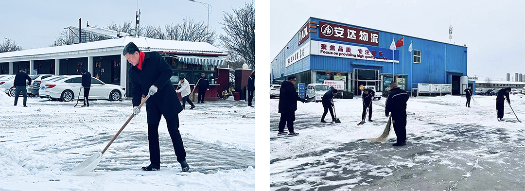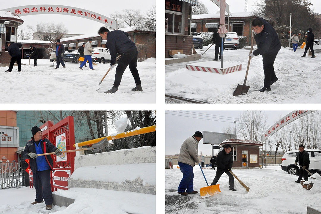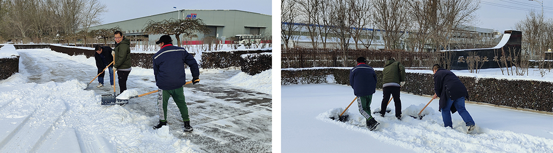 20日-21日晨,受大范圍寒潮影響,我市大部分地區出現中到大雪,翩然而至的龍年第一場(chǎng)春雪為春節期間的城市平添了幾分浪漫與詩(shī)意,但雪景雖美,也為人們的出行和工作帶來(lái)諸多不便。為保障員工們安全出行,21日一大早,安達集團本部及各子公司廠(chǎng)院內,各單位員工在相關(guān)領(lǐng)導帶領(lǐng)下,手拿鐵鍬、掃帚、簸箕等工具,對辦公樓門(mén)前區域和廠(chǎng)區內重要作業(yè)點(diǎn)位開(kāi)展積雪大清掃活動(dòng)。瑟瑟寒風(fēng),“斷崖式”降溫,無(wú)不顯示著(zhù)倒春寒的“威力”,安達人不畏嚴寒,“浴”雪奮戰,大家擰成一股繩,全力除雪,用行動(dòng)完美詮釋著(zhù)“團結就是力量”。