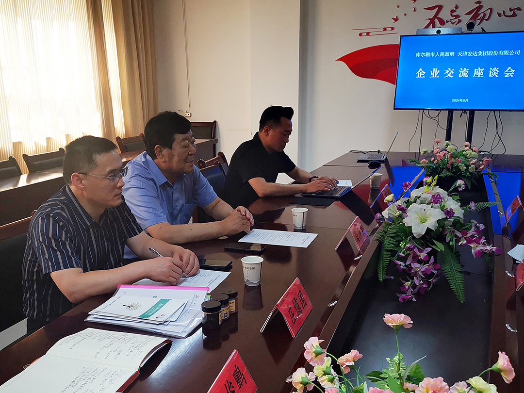 當天下午,庫爾勒市政府副市長(cháng)楊松波、庫爾勒市商務(wù)和工業(yè)信息化局黨組書(shū)記、副局長(cháng)王偉,庫爾勒市退役軍人事務(wù)局、市容環(huán)衛事務(wù)中心、商工局、上庫高新產(chǎn)業(yè)技術(shù)開(kāi)發(fā)區分管領(lǐng)導與安達集團黨委書(shū)記、董事長(cháng)崔洪金,安達集團董事長(cháng)助理王俊鵬,安達集團分公司天津鴻達精工機械有限公司經(jīng)理莊儒國以及財金城倉(庫爾勒)環(huán)??萍加邢薰靖笨偨?jīng)理吳江濤共同參加座談會(huì )。