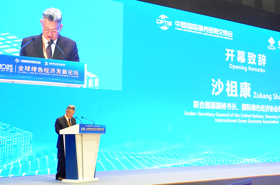 本次論壇以 共筑 SDGs— 綠色經(jīng)濟創(chuàng )新與全球合作為主題,匯聚了聯(lián)合國及歐盟委員會(huì )官員、多國駐華使節、中央部委專(zhuān)家、地方政府代表、中外專(zhuān)家學(xué)者和綠色低碳行業(yè)企業(yè)代表等 300 余人。聯(lián)合國原副秘書(shū)長(cháng)、國際綠色經(jīng)濟協(xié)會(huì )榮譽(yù)主席沙祖康為開(kāi)幕式致辭,強調了開(kāi)展綠色經(jīng)濟創(chuàng )新與全球合作對于推動(dòng)實(shí)現 SDGs 的重要性。