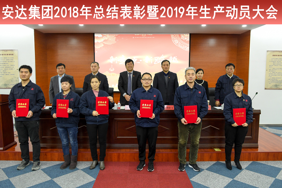 黨委書(shū)記、董事長(cháng)崔洪金首先對獲獎的團體、個(gè)人表達了由衷的祝賀并在大會(huì )上作出重要講話(huà),他指出:2018年,是貫徹黨的十九大精神的開(kāi)局之年,是改革開(kāi)放40周年,同時(shí)也是安達集團成立的第30個(gè)年頭。面對國際經(jīng)濟形勢的復雜多變,面對改革開(kāi)放的全面深化,面對市場(chǎng)不確定因素的進(jìn)一步增多,面對政策制度的不斷調整,全體安達人不忘初心,正視挑戰,積極作為,迎難而上,整體經(jīng)營(yíng)形勢逐步好轉。相比去年,物流板塊在產(chǎn)值上有所突破;機械板塊平穩中有亮點(diǎn);電子和生物制藥板塊蓄勢待發(fā),銷(xiāo)售服務(wù)探索前行,春天在向我們招手。同時(shí)2019年,將是安達集團滾石上山,爬坡較勁的攻堅之年,強化改革、戰勝困難的轉折之年,夯實(shí)基礎、強力發(fā)展的關(guān)鍵之年,我們面臨機遇,也面臨挑戰,齊心協(xié)力、克服困難、創(chuàng )新發(fā)展是我們的不二選擇。希望大家:一是要認清形勢,抓住機遇,融入國家發(fā)展戰略;二是弘揚傳統,激勵斗志,持之以恒穩步向前;三是健全制度,創(chuàng )新模式,科學(xué)管理,提高效益;四是齊心協(xié)力,加快發(fā)展,增強員工的獲得感。安達人團結一心,眾志成城,安達集團定將屹立潮頭,取得更加輝宏的成就!