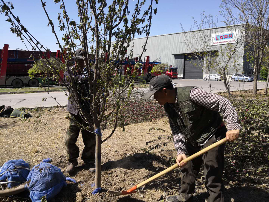 春日融融,新綠初綻。為進(jìn)一步美化廠(chǎng)院,營(yíng)造綠色健康的工作環(huán)境,由安達集團統一安排的春日植樹(shù)活動(dòng)于4月14日一大早正式開(kāi)始。集團統一采購了300余顆海棠樹(shù)分別栽種于分公司鴻達精工和安駿掛車(chē)兩家公司的廠(chǎng)院內。