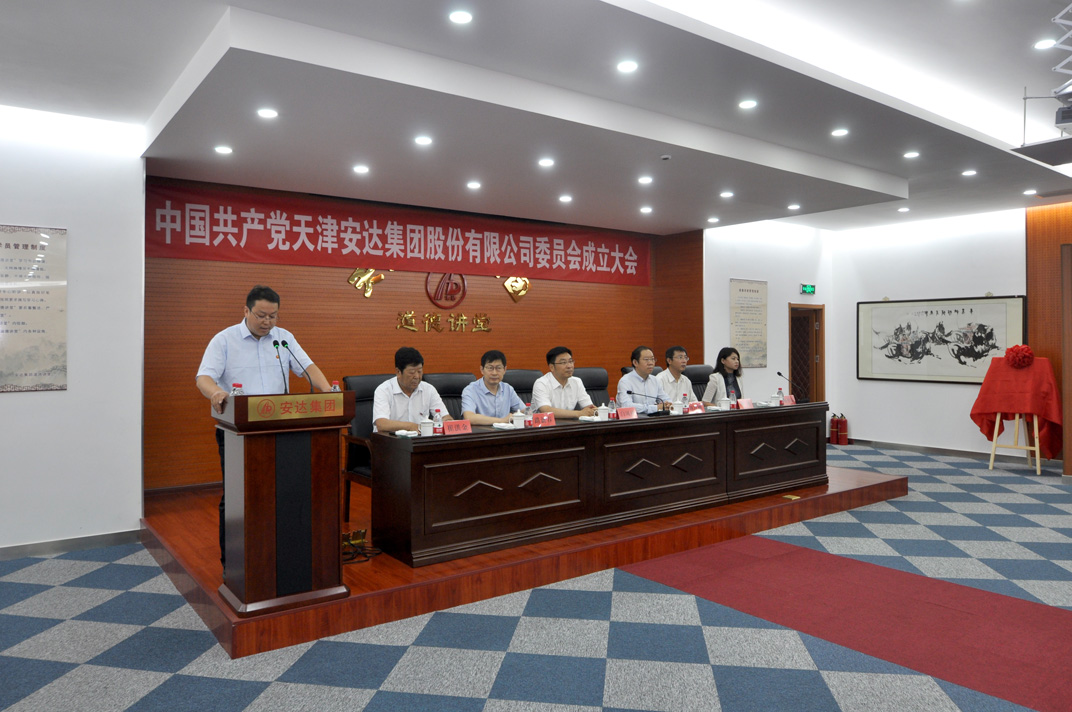天津安達集團股份有限公司自1995年成立黨組織,通過(guò)22年的發(fā)展,現在已經(jīng)擁有黨員101人,下設黨支部4個(gè),成為集團發(fā)展的堅強領(lǐng)導核心和企業(yè)前行的動(dòng)力源泉。 日前經(jīng)區工商聯(lián)會(huì )員企業(yè)黨委批準,天津安達集團股份有限公司黨委于2017年4月11日批復成立,安達黨委經(jīng)過(guò)三個(gè)月的精心籌備于7月13日,在天津安達集團6樓報告廳正式召開(kāi)天津安達集團黨委成立大會(huì )。市委統戰部副部長(cháng)市工商聯(lián)黨組書(shū)記劉道剛、市工商聯(lián)副主席鄭偉、市工商聯(lián)會(huì )員企業(yè)黨辦副主任楊雅晶、區委副書(shū)記白鳳祥、區政協(xié)副主席區工商聯(lián)主席路新春以及全國工商聯(lián)執委安達集團黨委書(shū)記董事長(cháng)崔洪金等相關(guān)領(lǐng)導出席會(huì )議。區工商聯(lián)副主席會(huì )員企業(yè)黨委副書(shū)記宋振巍主持會(huì )議。